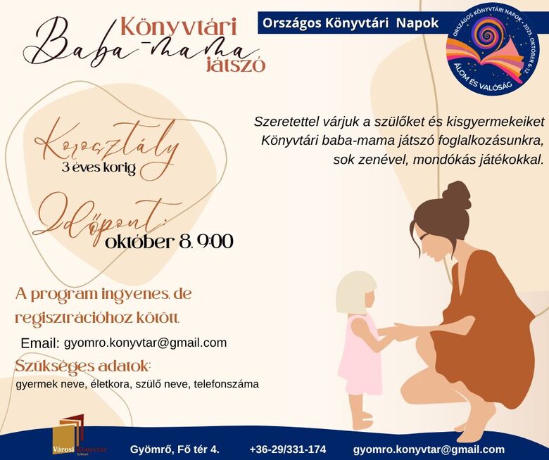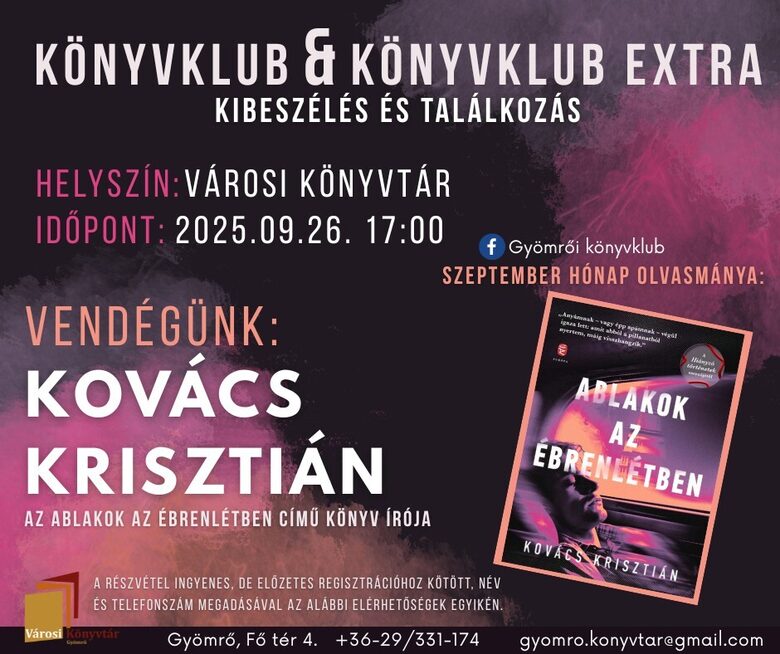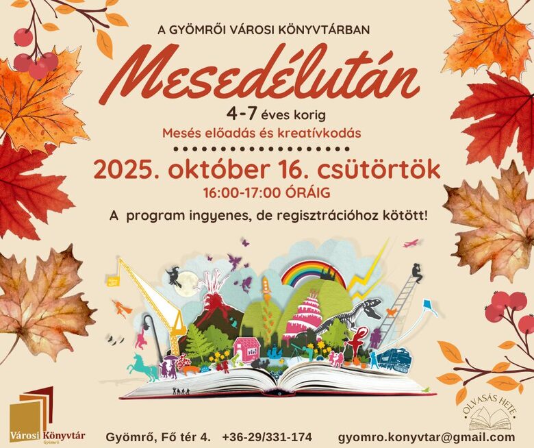 Regisztrálni a gyomro.konyvtar@gmail.com e-mail címen lehet név, telefonszám és résztvevők számának megadásával.