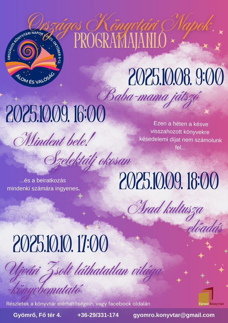 Széleskörű programmal várjuk az érdeklődőket október 6. és 12. között, az Országos Könyvtári Napok alkalmából.